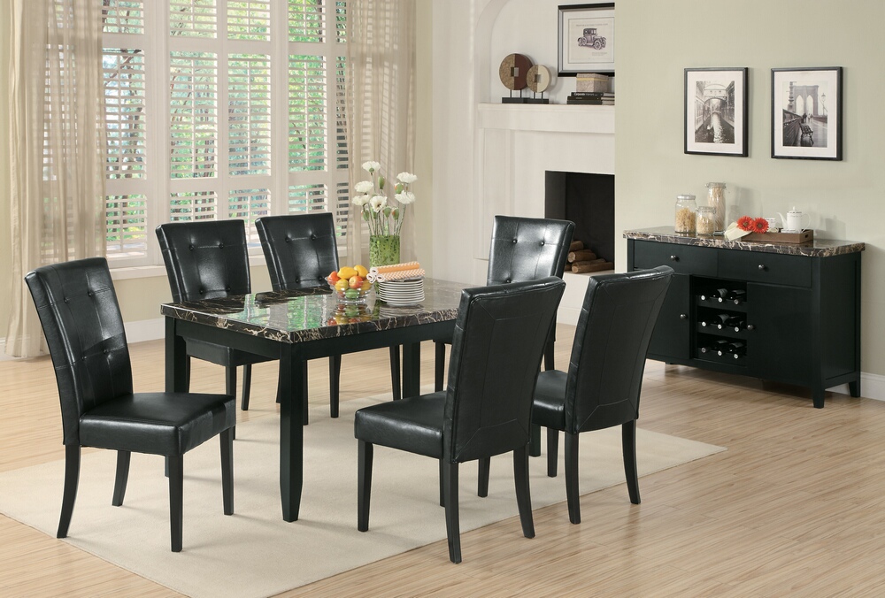 Source: 102791-72 7 pc anisa ii collection espresso finish wood black faux marble top dining table set with black leather like vinyl upholstered chairs