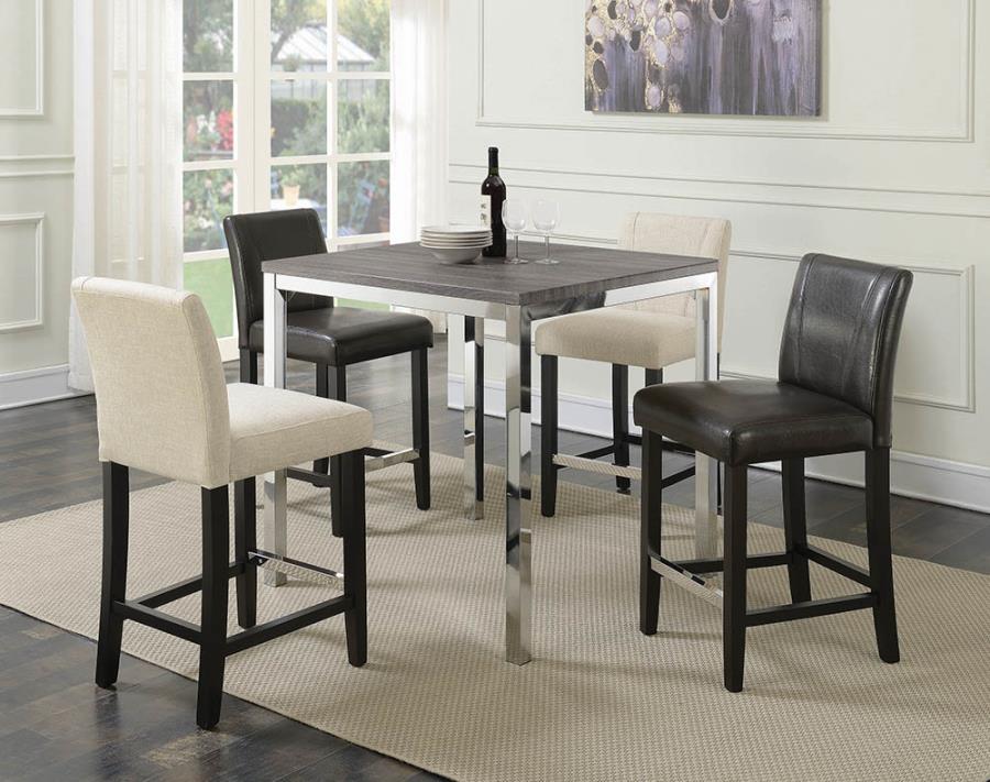 Source: 121128 5 pc Eldridge weathered gray top chrome frame counter height dining table set