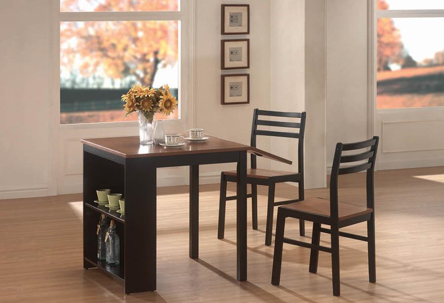 Source: 130015 3 pc Nathan brown and black finish wood drop leaf breakfast table set