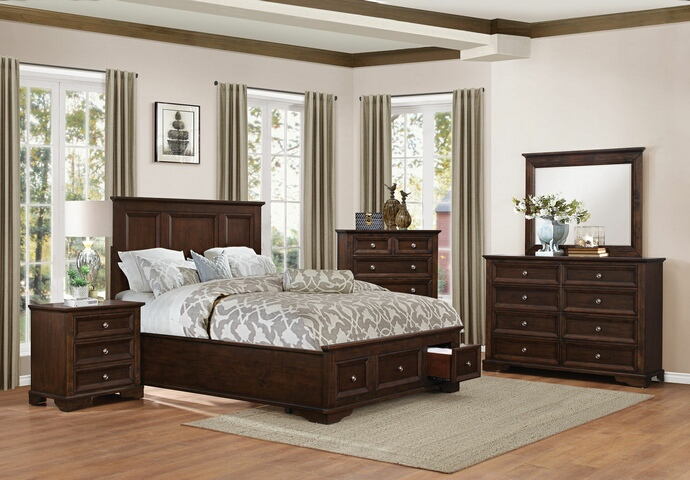 Source: 1844DC-5PC 5 pc eunice collection espresso finish wood low profile storage footboard bedroom set