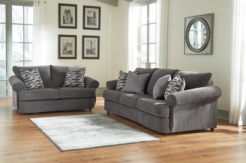 2 pc Allouette collection ash fabric upholstered sofa and love seat set with rounded arms. This set includes the Sofa and Love seat featuring rounded arms. Sofa measures 100″ x 40″ x 38″ H. Love seat measures 74″ x 40″ x 38″ H. Optional chair and ottoman also available separately. Some assembly may be required.