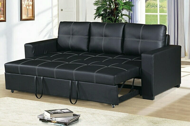 2 pc Daryl II collection black faux leather upholstered sofa set with pull out sleep area. Sofa features a pull out bed area underneath sofa cushion. Sofa measures 85″ x 32″ x 33″ H. When flat measures 85″ x 57″ x 33″ H. Some assembly may be required.