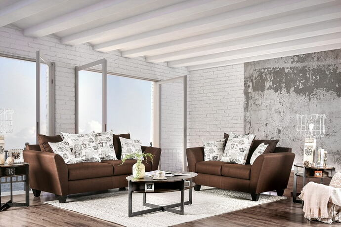 2 pc Delanie collection chocolate linen like fabric upholstered sofa and love seat set. This set includes the Sofa and Love seat. Sofa measures 86″ x 37″ x 39″ H. Love seat measures 64″ x 37″ x 39″ H. Some assembly required.
