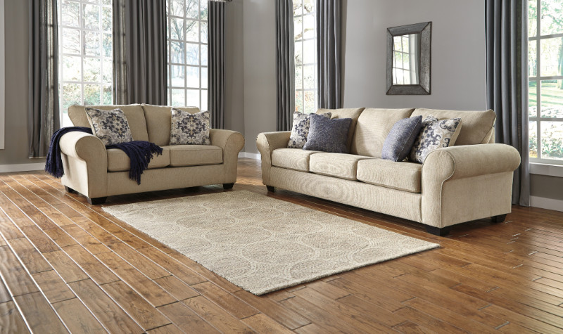 2 pc Denitasse collection parchment fabric upholstered sofa and love seat set with rounded arms. This set includes the Sofa and Love seat featuring rounded arms. Sofa measures 102″ x 41″ x 40″ H. Love seat measures 76″ x 41″ x 40″ H. Optional chair and ottoman also available separately. Some assembly may be required.