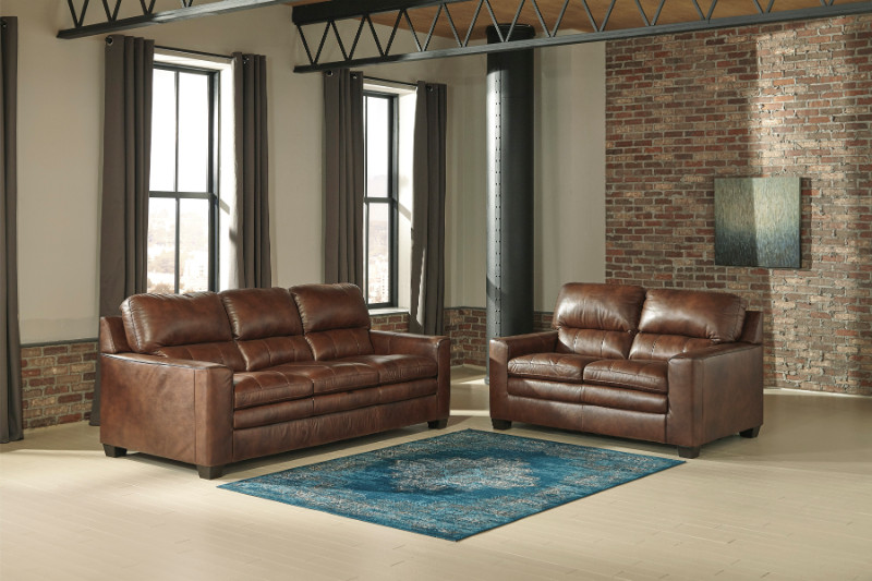 2 pc Gleason collection canyon leather match upholstered sofa and love seat set with squared arms. This set includes the Sofa and Love seat featuring rounded arms. Sofa measures 85″ x 41″ x 38″ H. Love seat measures 61″ x 41″ x 38″ H. Optional chair and ottoman also available separately. Some assembly may be required.
