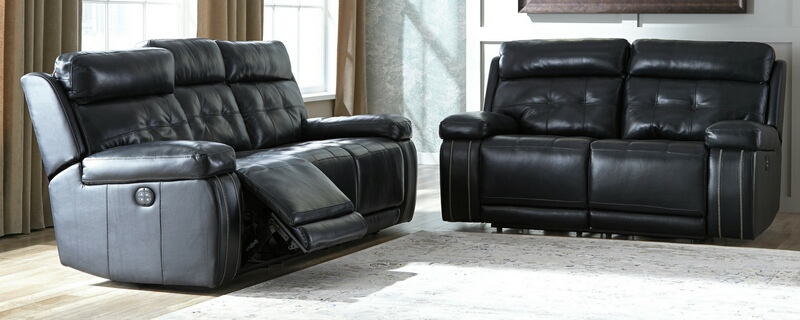 2 pc Graford collection navy leather match upholstered sofa and love seat set with power recliners. This set includes the sofa and the love seat with recliners on the ends. Sofa measures 92″ x 38″ x 40″ H. Love seat measures 66″ x 38″ x 40″ H. Some assembly required.