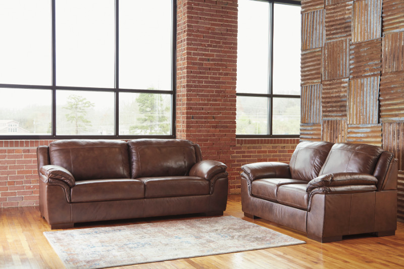 2 pc Islebrook collection canyon leather match upholstered sofa and love seat set with overstuffed arms. This set includes the Sofa and Love seat featuring rounded arms. Sofa measures 91″ x 40″ x 39″ H. Love seat measures 70″ x 40″ x 39″ H. Optional chair and ottoman also available separately. Some assembly may be required.