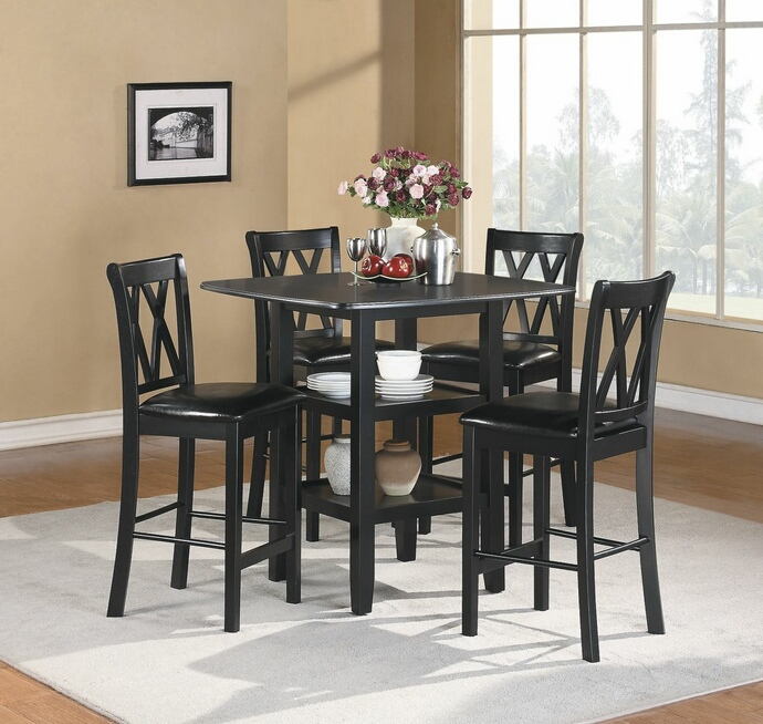 Home Elegance 2514BK-36 5 pc norman collection black finish wood counter height dining table set with upholstered seats