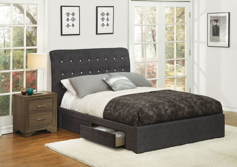 Source: Acme 25680Q Drorit dark gray fabric tufted under bed storage drawers queen bed set