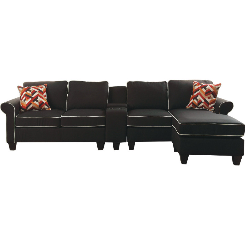 Acme 54240-42-43 4 pc Kelliava black fabric modular sectional sofa with USB power dock console