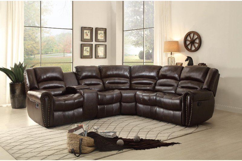 Home Elegance HE-8411-LCNR 3 pc palmyra iii collection dark brown bonded leather match upholstered sectional sofa console recliners