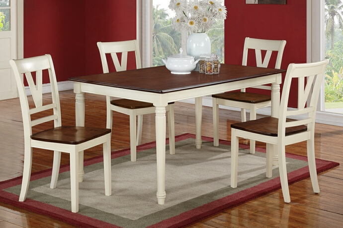 Source: Poundex F2391-1351 5 pc erin iii cream finish wood legs and cherry finish wood tops dining table set