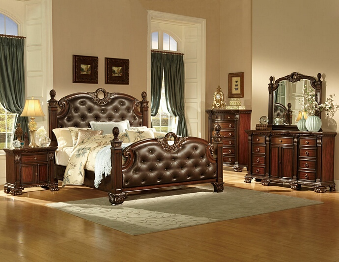 Source: Home Elegance 2168-5PC 5 pc orleans collection rich cherry finish wood button tufted accents bedroom set