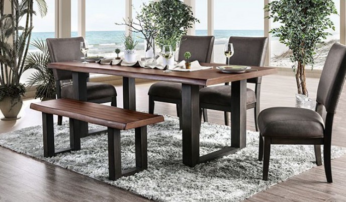 CM3310T-6PC 6 pc Faulk espresso finish wood trestle base dining table set
