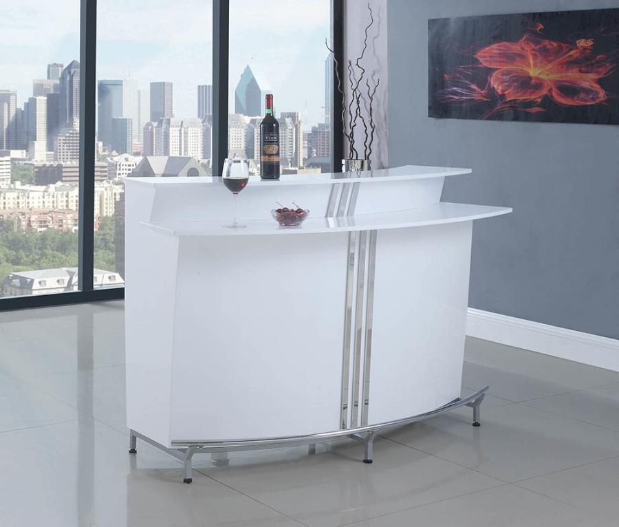 180239 Home bar unit modern style white and chrome finish metal curved front bar unit