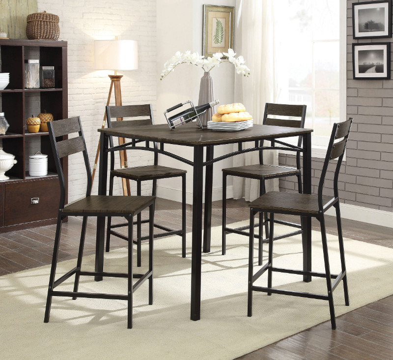 Source: Acme 72520 3 pc Irmeda gray oak finish wood metal frame counter height bar table set