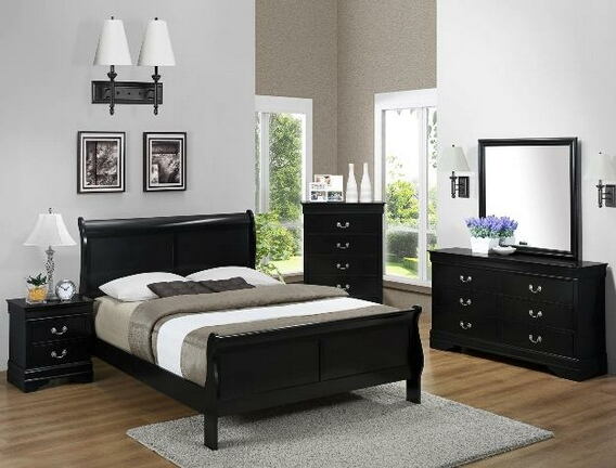 Source: B3900 5 pc Louis Philip black finish wood sleigh queen bedroom set
