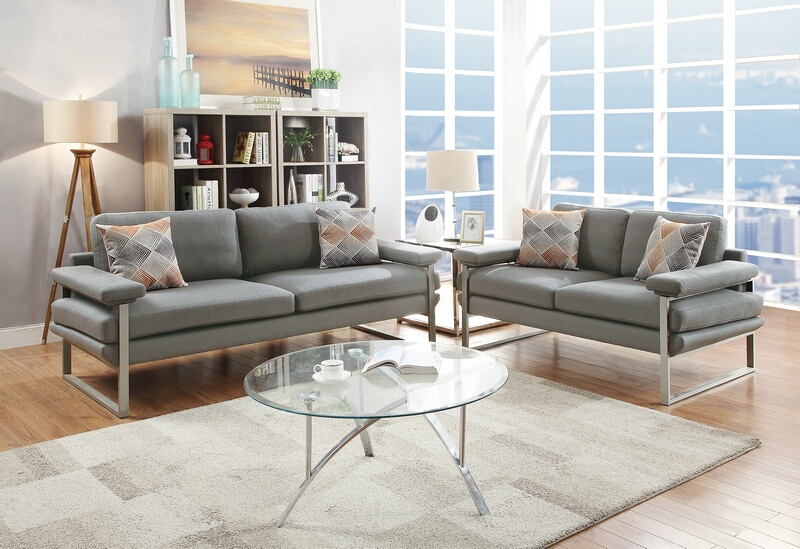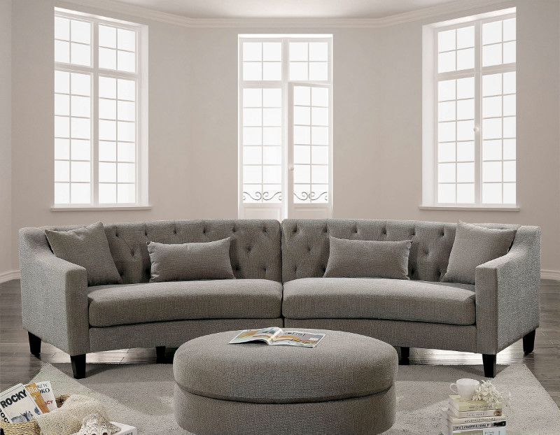 CM6370 2 pc sarin aretha warm gray linen like fabric curved back sectional sofa