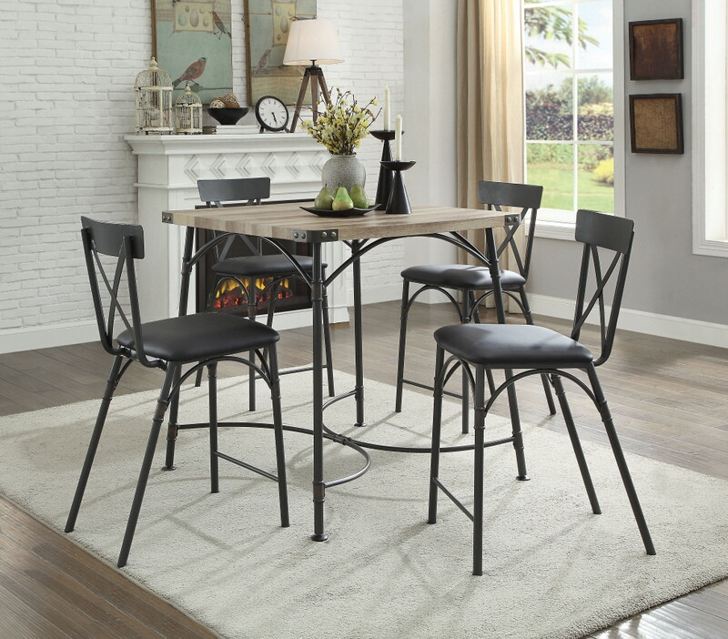 Source: Acme 72085-87 5 pc Itzel sandy gray metal antique oak counter height dining table set