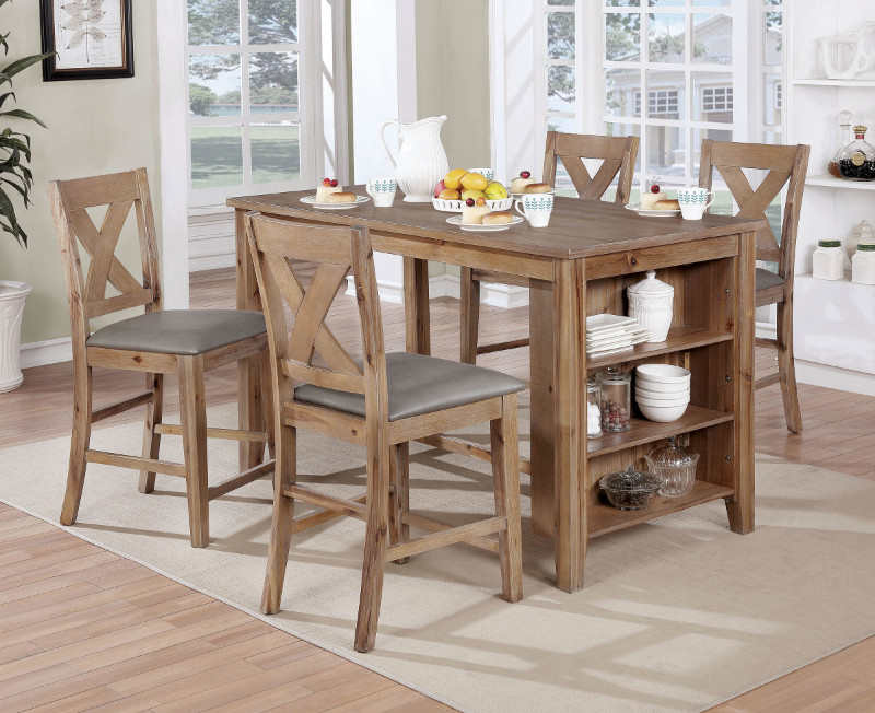 CM3153NT-PT-5PC 5 pc Lana weathered natural tone finish wood counter height dining table set with shelves