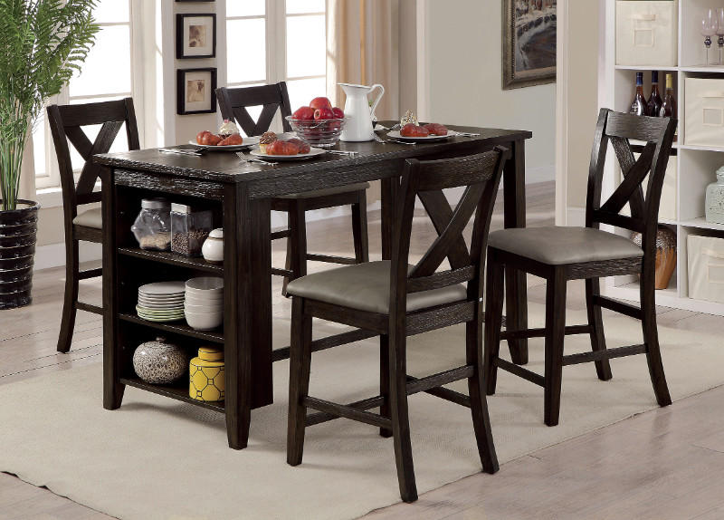 Source: CM3153-PT-5PC 5 pc Lana dark walnut finish wood counter height dining table set with shelves