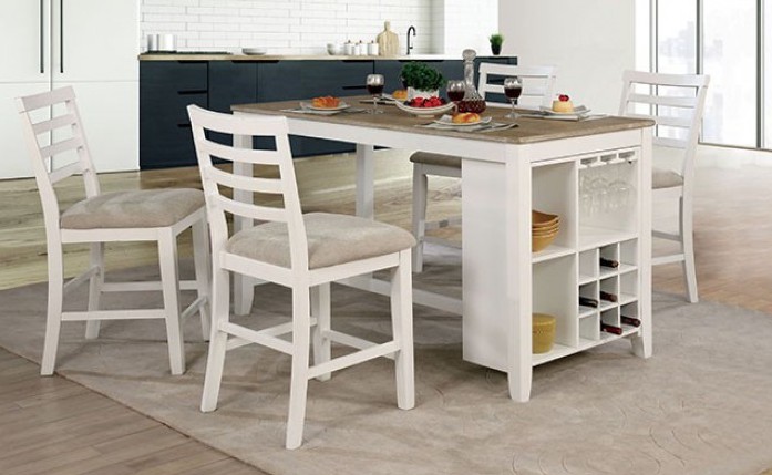 Source: CM3156-PT-5PC 5 pc Kiana white/weathered oak finish wood counter height dining table set with shelves