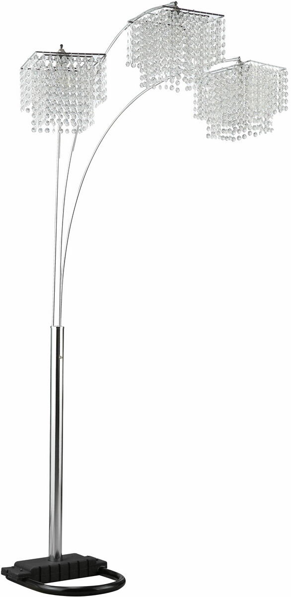 Traditional Style 3 Poly Crystal Floor Lamp with Chrome Finish and Black Base. Poly crystal lamp with a chrome finish and black base is sure to create an elegant feel in your room. This floor lamp takes up to 40 watt bulb and has a 3 way switch. This stylish lamp stands 84″H. Bulbs are not included. Some Assembly May Be Required.