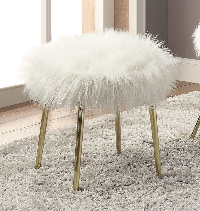 Source: CM-AC6546-OT Caoimhe white fur like fabric upholstered ottoman with gold legs