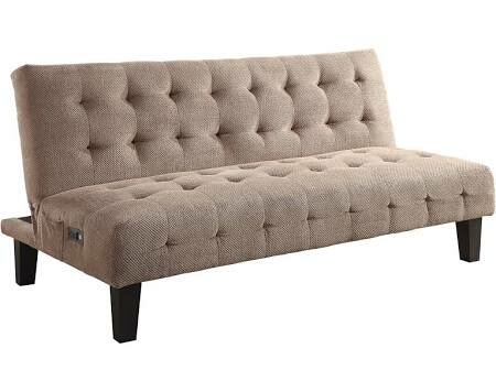 Source: 500295 Erickson ii collection taupe textured chenille fabric upholstered folding futon sofa bed with espresso finish legs and usb charging ports