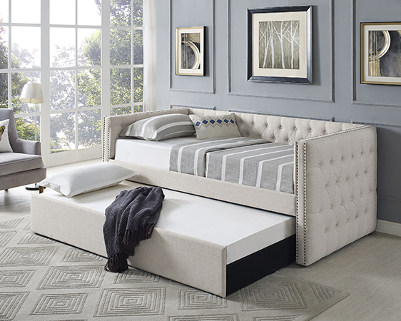 8612 Suzanne II beige tufted linen like fabric upholstered twin size day bed with trundle