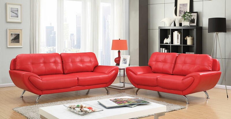 CM6414RD 2 pc Reanna red leatherette retro modern styling sofa and love seat set