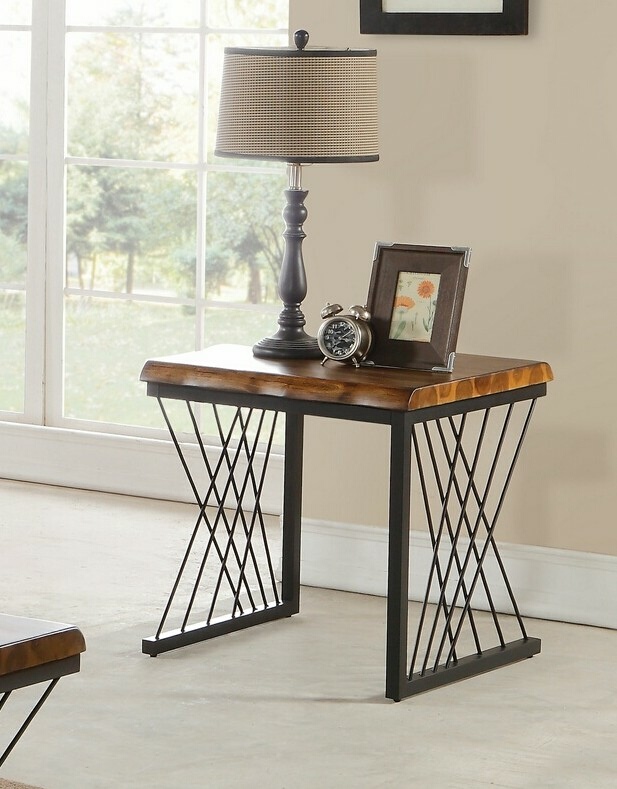 Source: Acme 82882 Callum antique oak finish wood natural edge black metal frame chair side end table