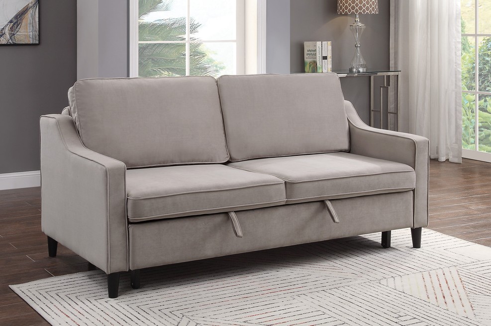 Homelegance 9428CB-3CL Winston porter Adelia cobblestone velvet fabric sofa with pop up sleep area and fold down back. Features a pull out pop up sleep area and fold down back. Measures 71.5″ x 38″ x 36.5″ H. When flat measures 71.5″ x 72″ x 29.5″ H. Some assembly required.