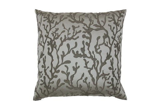 24″ x 24″ Barrier Taupe coral reef print throw pillow with a feather/down insert and zippered removable cover. These pillows feature a zippered removable 24″ x 24″ cover with a Feather / Down insert. Measures 24″ x 24″ . These are custom made in the U.S.A. and take 4- 6 weeks lead time for production.