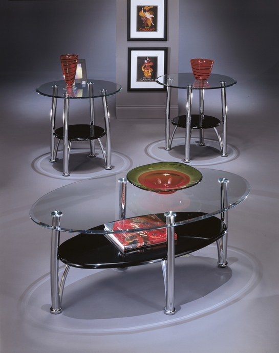 3 pc Dempsey collection chrome metal finish and tempered glass top coffee and end table set. This set includes the coffee table and 2 – end tables with curved line design and rounded edge glass tops. Coffee table measures 46″ x 28″ x 21″ H. End tables measure 26″ x 26″ x 25″ H. Some assembly required