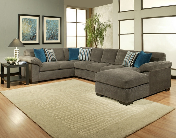 3 pc Dragonfly collection Flannel colored fabric upholstered sectional sofa set with over stuffed arms. This set comes with a LAF sofa , armless love seat and RAF chaise with fabric upholstery and accent throw pillows. Sectional measures 103″ x 156″ x 68″ Long chaise x 40″ D x 36″ H. Ottoman also available separately. This item is made in the U.S.A. and takes 2-3 weeks for manufacturing. Shipping will take up to 2-3 weeks from warehouse to your home.