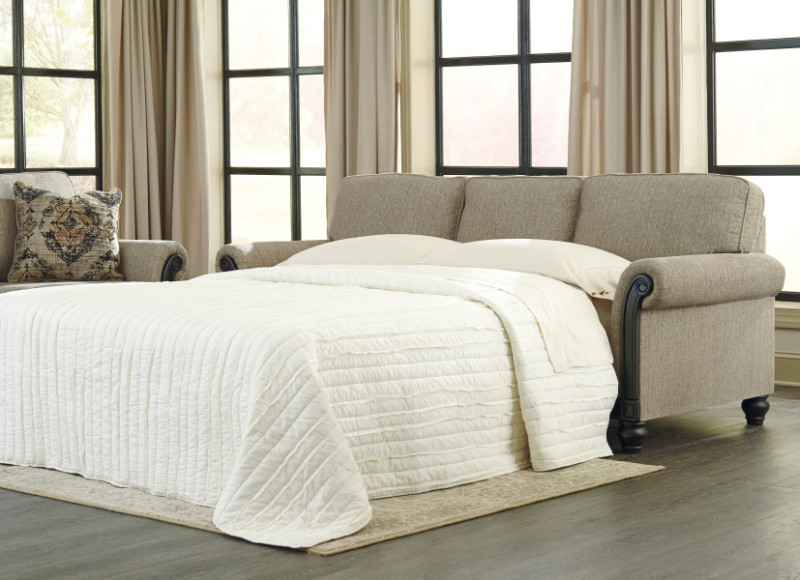 33503-39 Blackwood collection taupe fabric upholstered pull out queen sleeper sofa with memory foam mattress