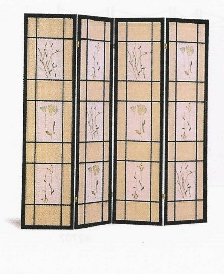 4 panel room divider screen with black frame and floral print, measures (4 x 18″ ) x 71″ H