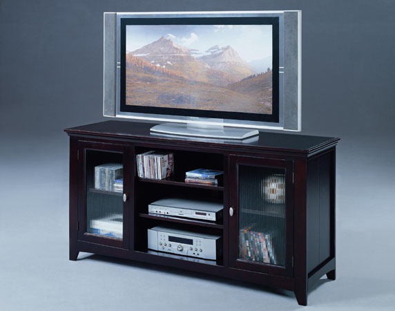 Source: 5005A Espresso finish wood tv stand with glass front doors