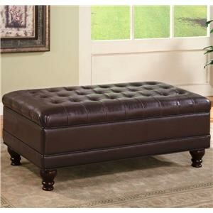 Source: 501041 Dark brown durable leather like vinyl storage ottoman with tufted seat and wood legs