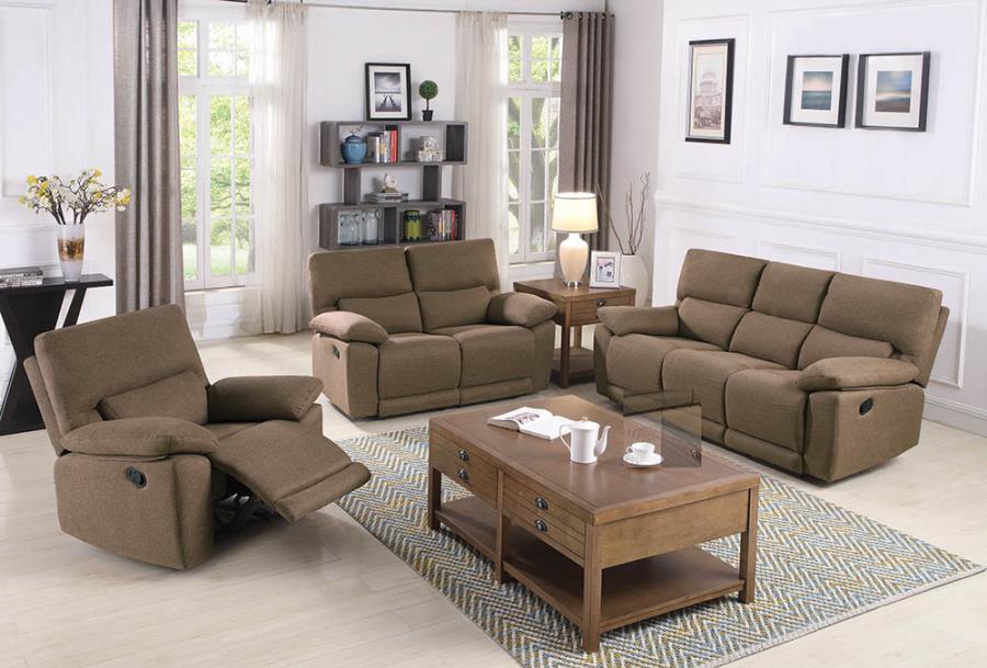 Source: 650251-52 2 pc hartville tan linen like fabric sofa and love seat set with recliner ends
