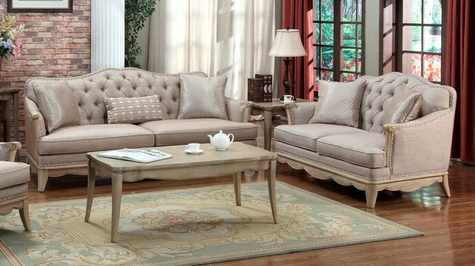 Source: 8313-SL 2 pc ashden collection neutral tone faux linen like fabric upholstered sofa and love seat set with wood trim