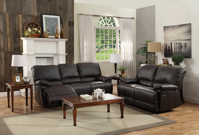 2 pc cassville collection dark brown bi cast vinyl upholstered sofa and love seat with recliner ends. This set includes the Sofa and Love seat with recliners on the ends and overstuffed arms. Sofa measures 81″ x 38″ x 39″ H. Love seat measures 61″ x 38″ x 39″ H. Single recliner chair also available separately and measures 39″ x 38″ x 39″ H. Some assembly required.