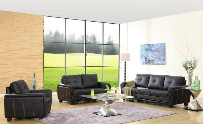 Source: 9701BLK-SL 2 pc dwyer black leather like vinyl sofa and love seat with accented stitching