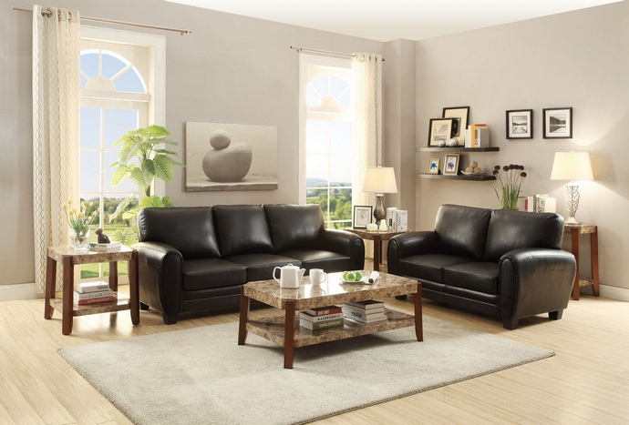 Source: 9734BK-SL 2 pc rubin black bonded leather sofa and love seat set rounded arms