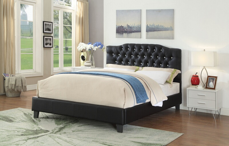 Heino black faux leather crystal like button tufted queen bed set. Bed features crystal like button tufted headboard. Bed measures 88″ x 63″ x 47″ H. Some assembly required.