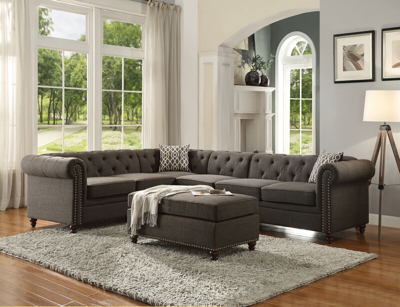 Source: Acme 52375 4 pc Aurelia II black linen fabric sectional sofa with armless chair