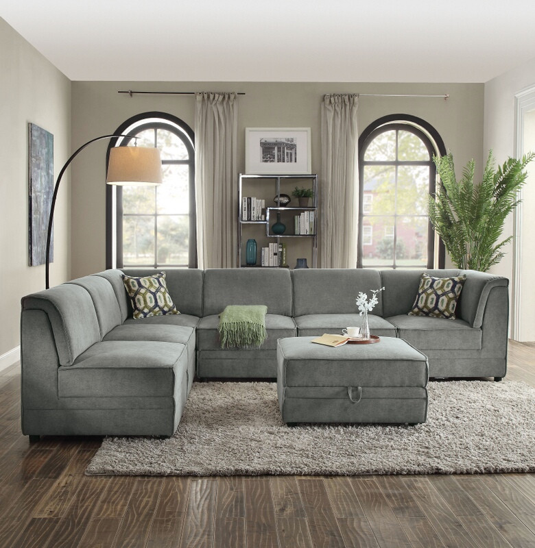 Source: Acme 53780-81A 6 pc Bois gray velvet modular sectional sofa