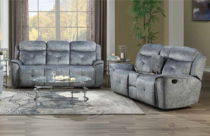 Acme 55030-31 2 pc Mariana silver gray fabric sofa and love seat set with recliner ends