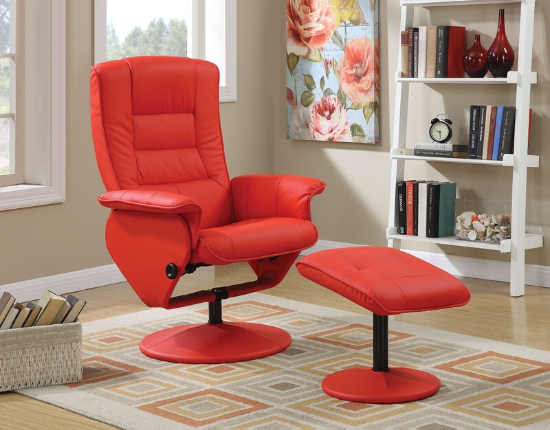 Source: Acme 59364 Arche red vinyl swivel reclining chair and ottoman